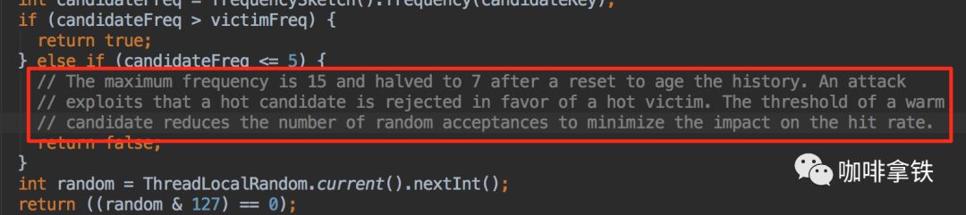 这个时候有人会质疑频率最大为15的这个是否太小?没关系在这个算法中,比如size等于100,如果他全局提升了size*10也就是1000次就会全局除以2衰减,衰减之后也可以继续增加,这个算法再W-TinyLFU的论文中证明了其可以较好的适应时间段的访问频率。