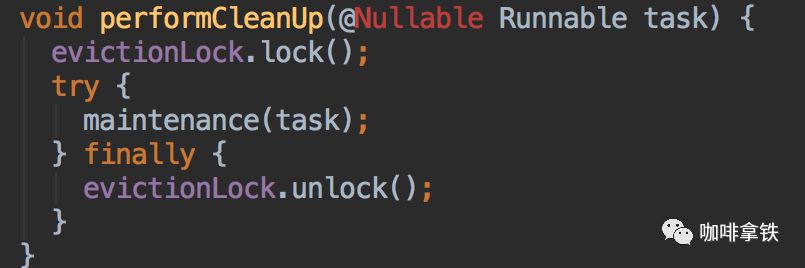 在performCleanUp方法中再次进行加锁,防止其他线程进行清理操作。然后我们进入到maintenance方法中: