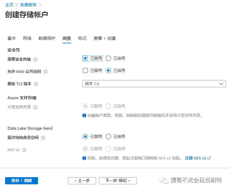 高级设置,把“需要安全传输”禁用,为了测试方便咱不走https。