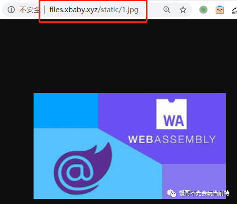 我们使用新域名访问下 http://files.xbaby.xyz/static/1.jpg 浏览器里出现了对应的图片,表示我们的自定义域名起作用了。