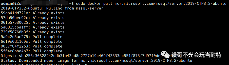 使用docker pull命令从docker hub拉取sqlserver 2019-ctp3.2的镜像