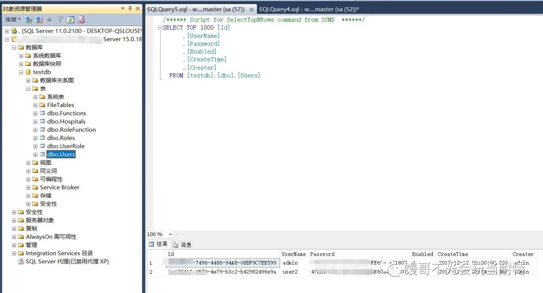使用服务器ip加端口连接成功后,可以看到刚才新建的数据库TEST_DB跟表TABLE1还有里面的数据都在。能使用SSMS管理后就简单多了跟使用SQL Server其他版本没啥区别。