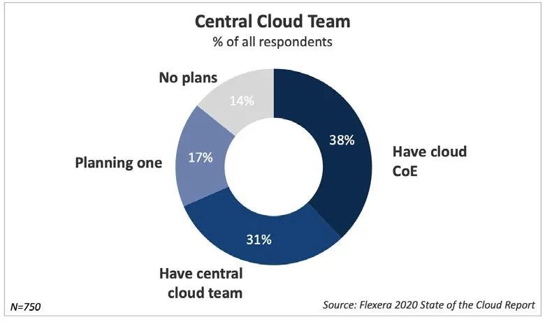 这就是我们经常听到的CoE(Cloud of Excellence)的设计,报告里说有38%的公司成立了云中心团队。