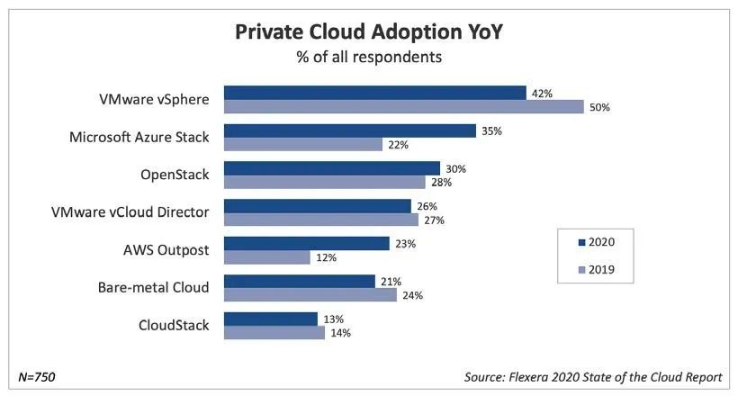 这个在中国也一样,私有云的市场还是集中在政府,大型企业,小公司相对很少,毕竟数据中心不是谁都能造得起的。