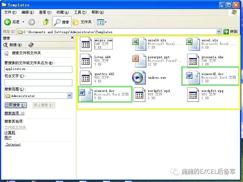【第一步】在C盘中找到【Templates】文件夹。路径如图2所示。一般是C:\Documens and Settings\Administrator,电脑的系统是XP。