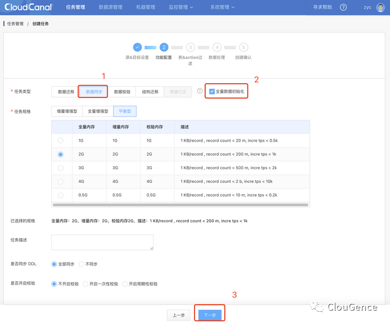 选择 数据同步,并且勾选全量数据初始化