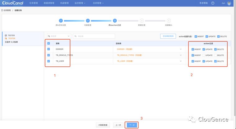 勾选需要同步的 INSERT/UPDATE/DELETE 操作,默认全选