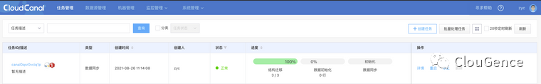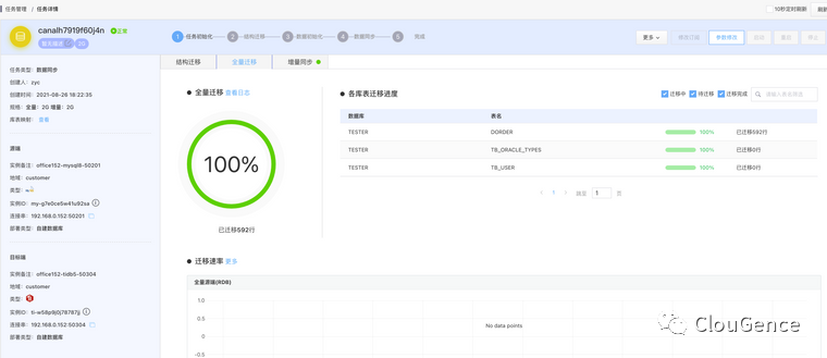 结构迁移、数据初始化、数据同步,每一个阶段完成时,状态自动流转,直到同步稳态