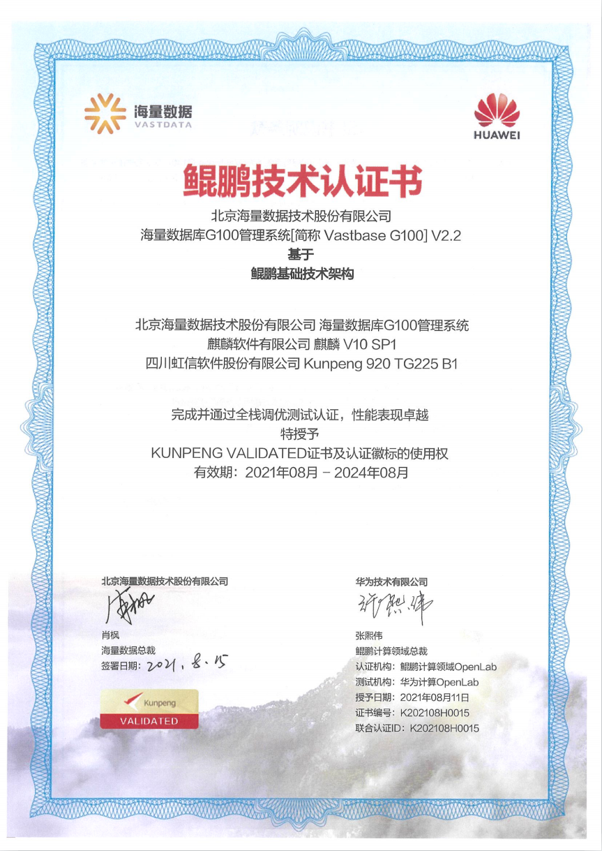 近日,北京海量数据技术股份有限公司(以下简称“海量数据”)的核心产品海量数据库 G100 管理系统(以下简称“Vastbase G100”)获得鲲鹏 Validated 认证。基于鲲鹏平台深度优化的海量数据库 Vastbase G100 充分发挥对以联机事务处理为主的交易型应用的支撑能力,完全贴合业务和技术的要求,能够支撑政府、金融、制造等行业的能力建设。
