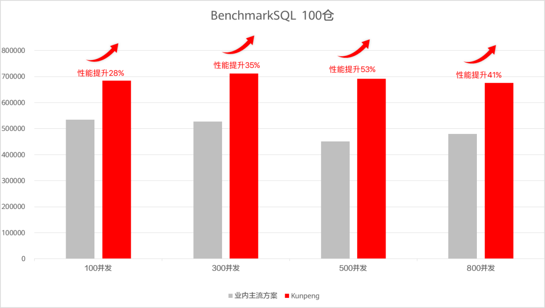海量数据 Vastbase G100 基于鲲鹏 BoostKit 全栈优化后,在性能、安全性及可用性上有着极大的提升。在使用 BenchmarkSQL 5.0 进行 TPCC 测试过程中,海量数据 Vastbase G100 充分利用资源,各项指标平稳,TPMC 较调优前性能提升39%,较业界主流方案性能提升39%。Vastbase G100 在通过鲲鹏化 SQL 引擎优化及鲲鹏化多引擎增强后,通过对行式寸尺、列式存储及内存存储,实现了业务处理的高性能和经营决策的高质量。