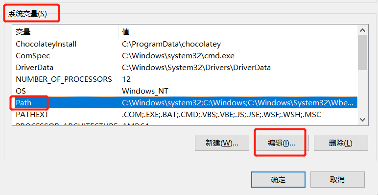 编辑系统环境变量中的Path: