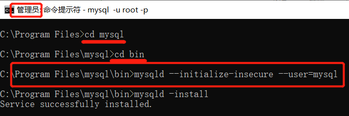 以系统管理员运行cmd,导航到bin文件夹: