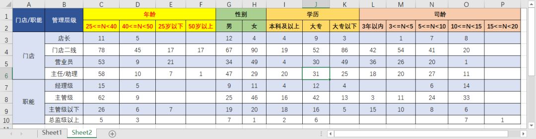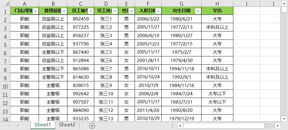 如下图,是某零售公司的一个员工花名册,已删除其他不用的项目:
