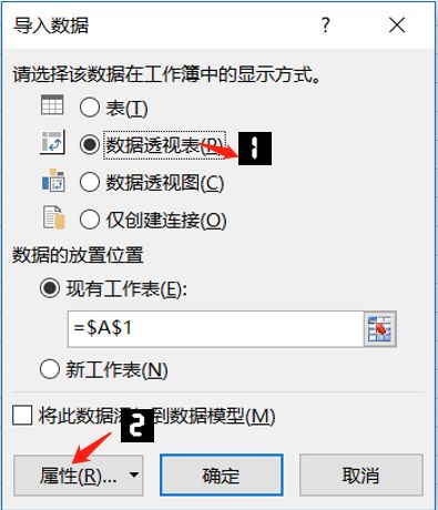 步骤3 在弹出的对话框中【数据透视表】,然后单击【属性】。