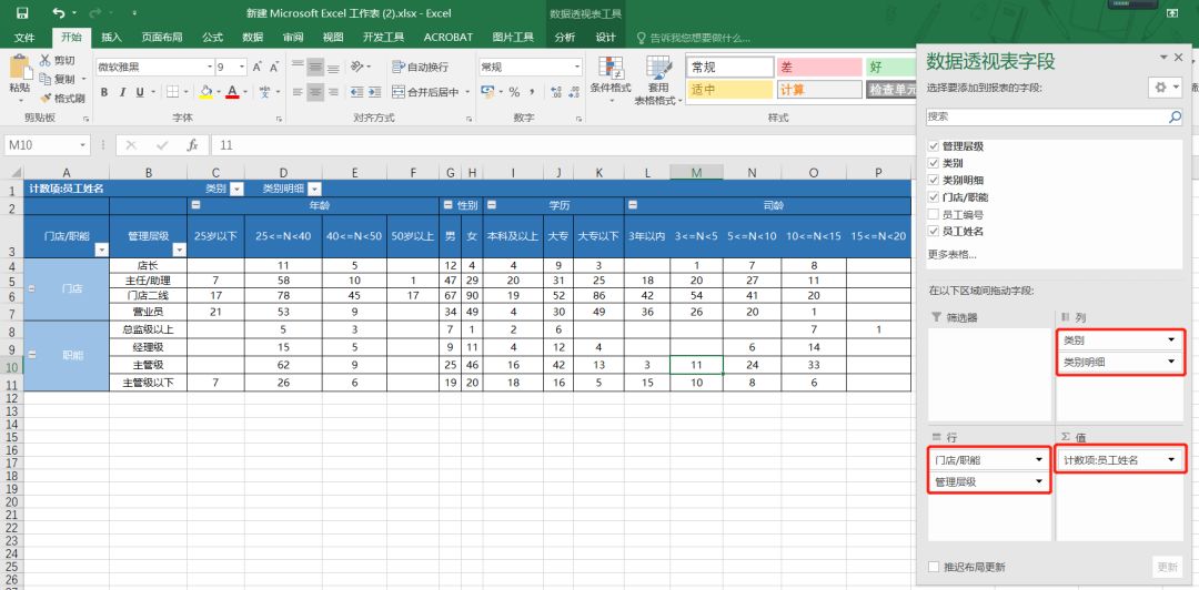最后进行设置美化即可完成对人事报表的统计。