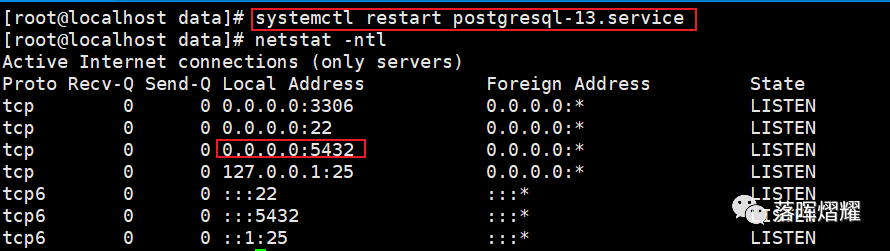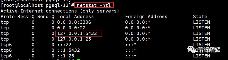 可以看到监听端口为5432,绑定本地ip:127.0.0.1。此时无法远程访问,需要修改以下两个配置文件: