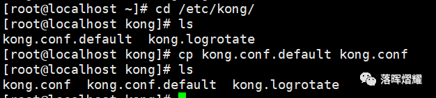 其中kong提供的配置文件在 /etc/kong 目录下,复制该文件以便修改: