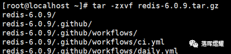 解压:tar -zxvf redis-6.0.9.tar.gz。
