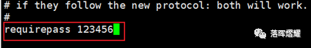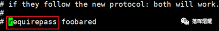 设置Redis密码,查找命令:/requirepass,取消注释,将 foobared 改为自己的密码。