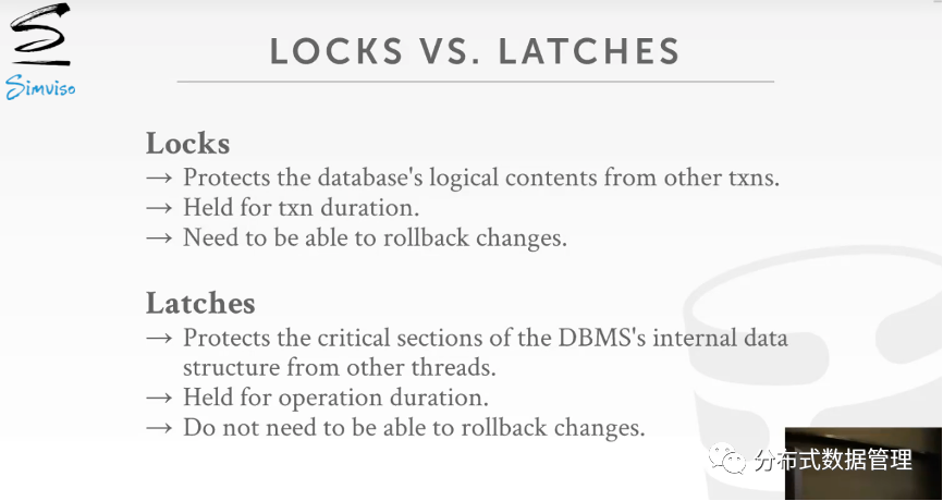 Lock针对数据库事务的一种逻辑上的锁,表示整个事务执行阶段对数据的占用,需要支持数据回滚. Latch指线程级别的锁,指一个线程执行阶段对数据的占用,不需要支持数据回滚. 具体区别如下: