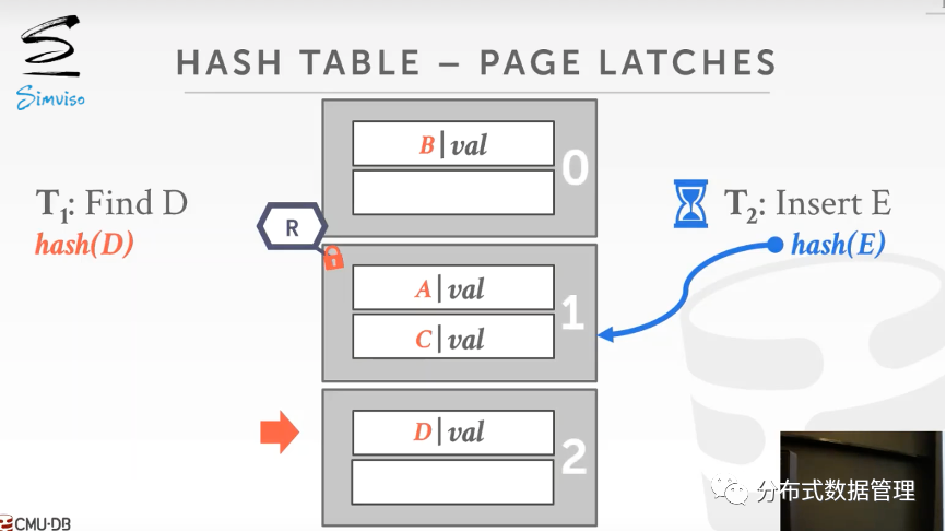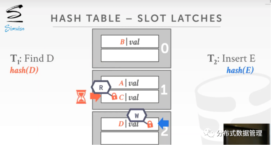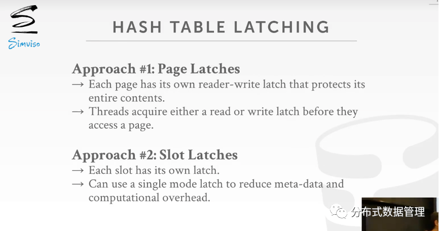 哈希表latch可以有两种方法,一种是对整个Page上锁,一种是对Slot上锁. 对Page上锁处理简单但是并发度有限,对Slot上锁管理复杂但可以获得更高的并发度.