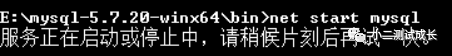 然后仍然以管理员的权限 net start mysql 开启Mysql服务了。
