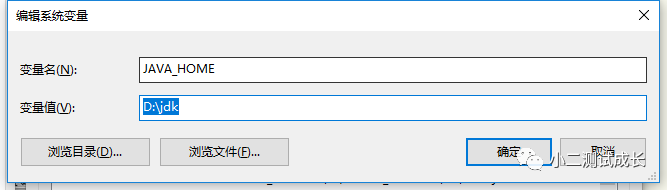 第一个环境变量:JAVA_HOME----D:\jdk(根据你自己的安装路径选择)