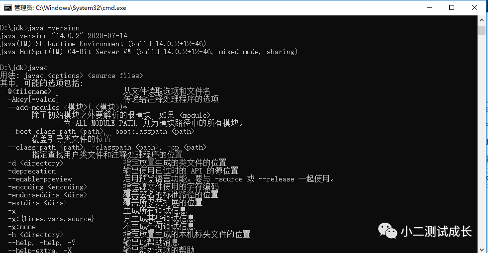 4.打开cmd验证是否安装成功 输入:java -version 然后输入javac