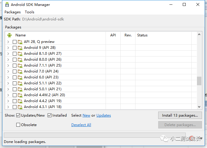 3、勾选你需要的下载的api版本和对应的andriod版本