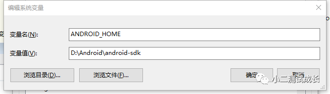 1、在系统环境变量里新建‘ANDROID_HOME’变量名,对应变量值为sdk所在的路径:D:\Android\android-sdk