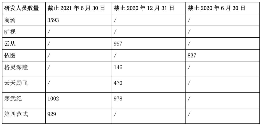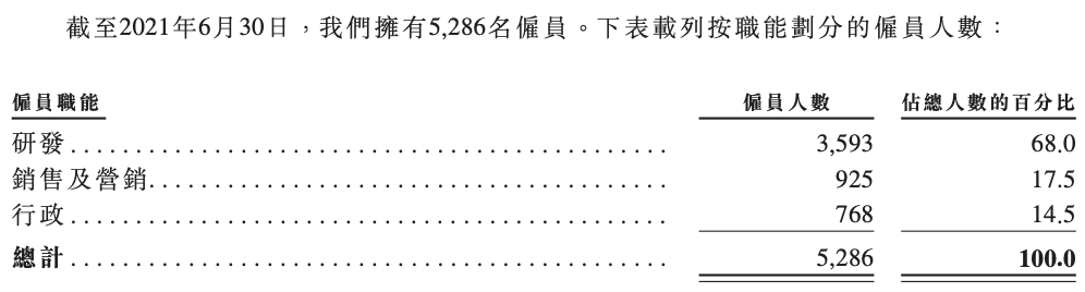 截止2021年6月30日,商汤共 5286 人,其中研发 3593 人: