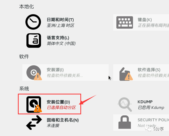 完成上述的所有更改后,回到先前的安装概览界面,点击“开始安装Begin Installation”以开始安装 CentOS 8.4。