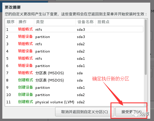 点击“接受更改Accept changes”,以上做的更改就会写入到硬盘中。