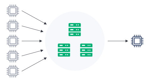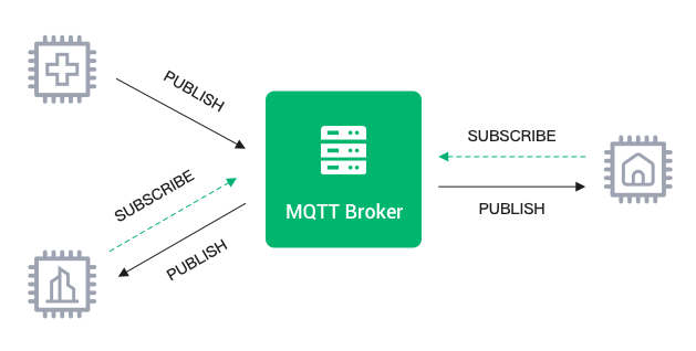 许多设备作为发布者,如温度传感器或者是压力传感器,发送数据给一个服务器。服务器再将这些数据发送给一个控制器(即订阅者)处理这些数据。