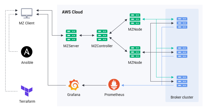 MZSever:可以用来创建场景(scenarios),例如创建一个发布者和多个订阅者。这些信息会作为服务器传送至 MZBench;