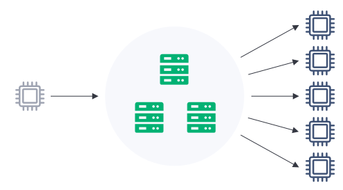 一个控制器作为发布者将消息传送给服务器,再由服务器将这些消息传送给多个作为订阅者的设备。