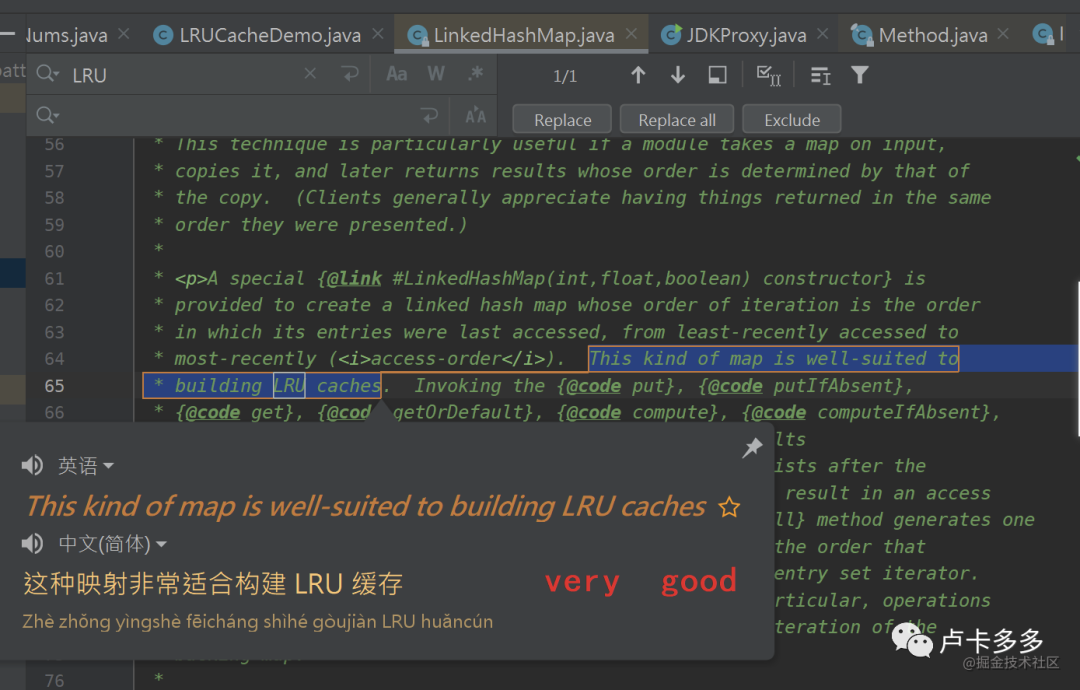 数据通过对于LRU中 LINKhashMap的实现, 是基于hash+双向链表的集合, 熟悉了LRU基本的工作机制,以及对于多个数据进入固定容器,如何筛选的过程,下期我们会根据数据的表现,提升一个段位,对于让你纯手写,不借助现成的集合方式,实现一个LRU的算法;你会如何写呢, 我是卢卡, 答案我们明天揭晓
