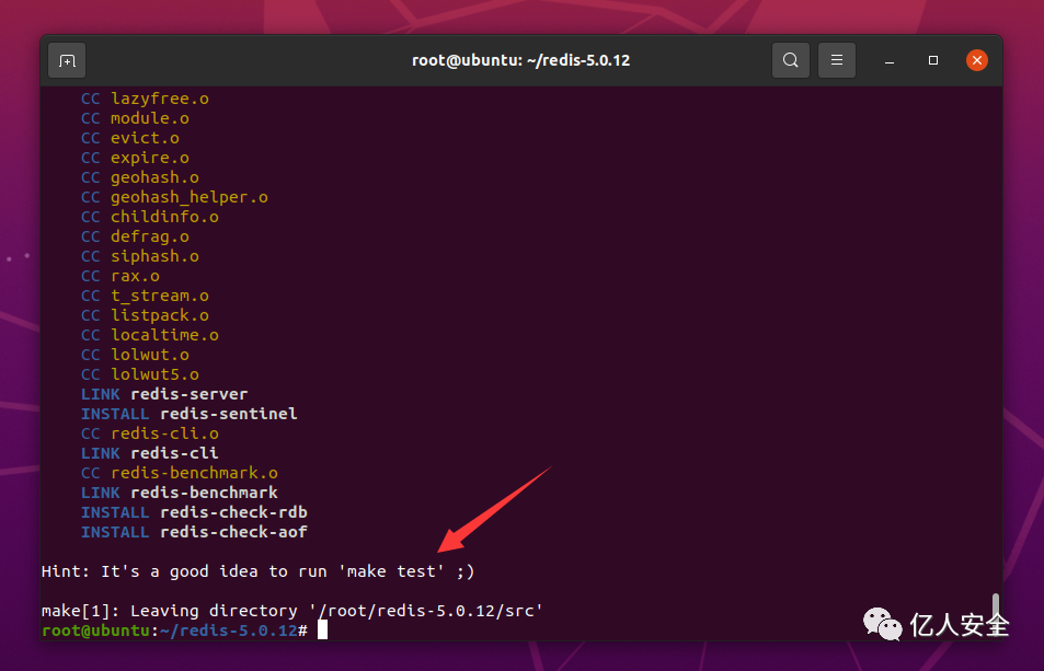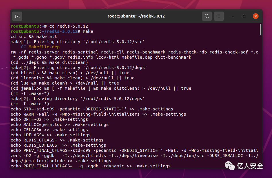 tar -zxvf redis-5.0.12.tar.gz第二步:下载并解压好以后,进入到Redis目录中,执行 make