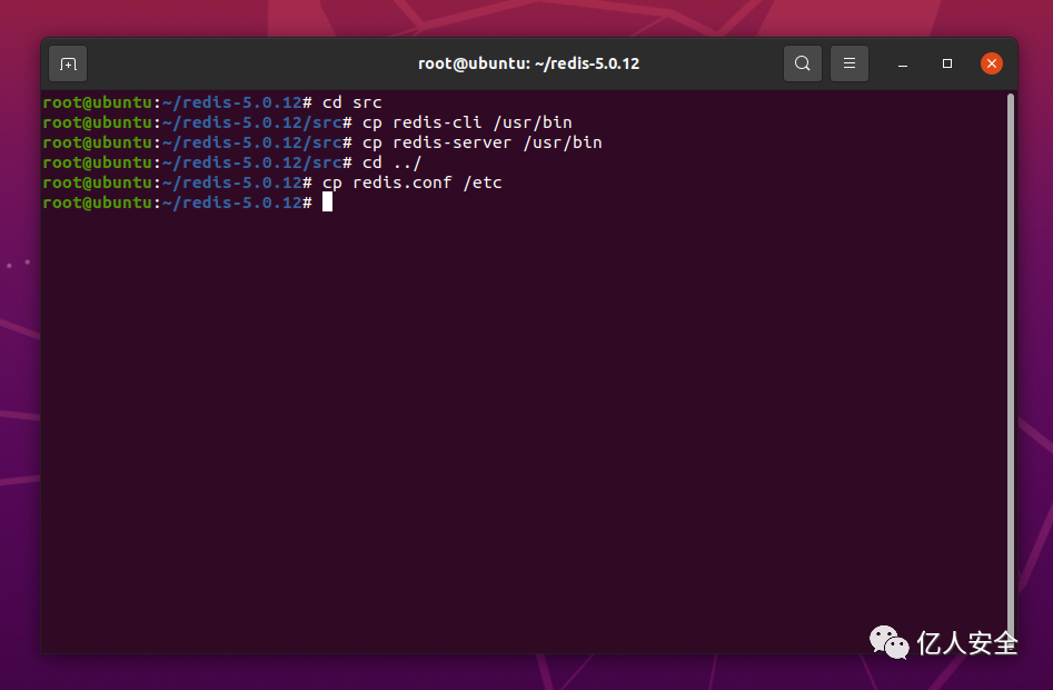 第四步:make结束后,进入src目录,将redis-server和redis-cli拷贝到/usr/bin目录下(这样启动redis-server和redis-cli就不用每次都进入安装目录了)