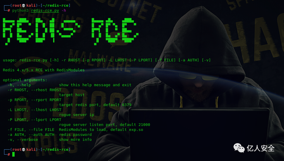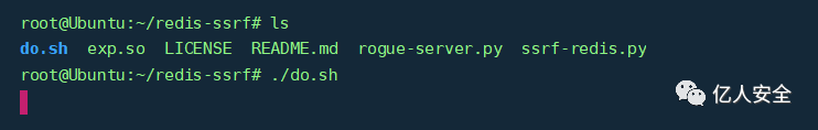 但是这个工具里少一个exp.so的文件,我们还需要去上面那个到 redis-rogue-server 工具中找到exp.so文件并复制到redis-rce.py同一目录下,然后执行如下命令即可: