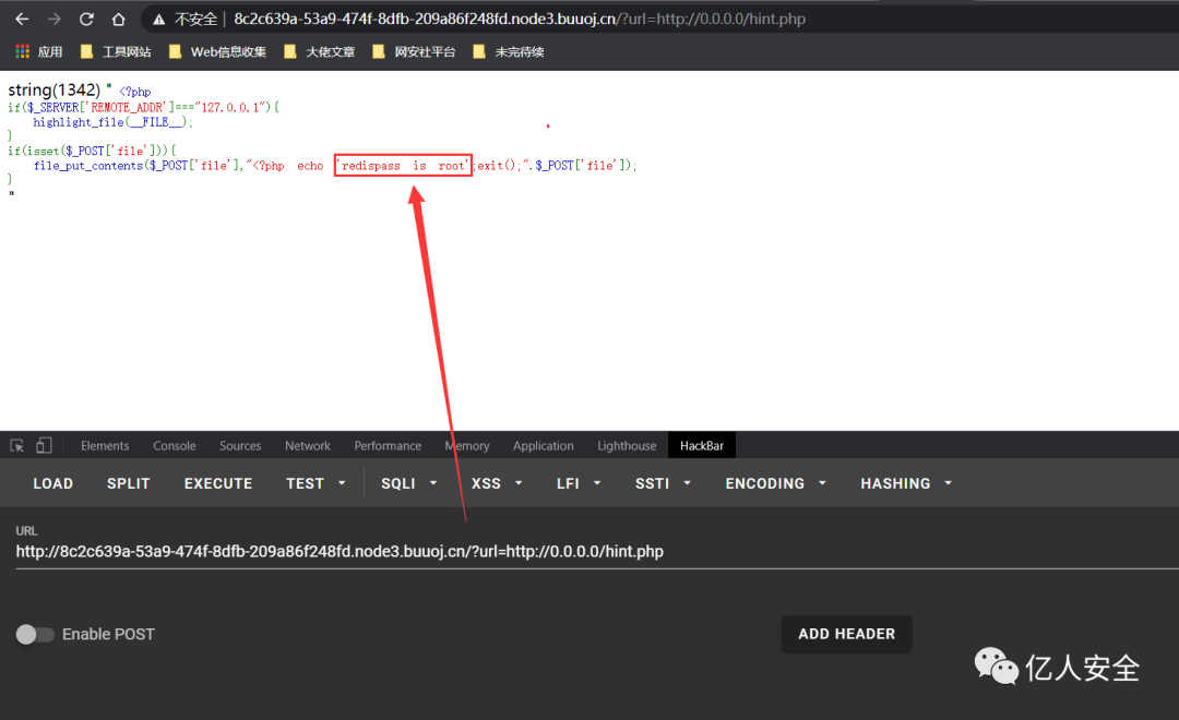 /?url=http://0.0.0.0/hint.php如下图所示,成功访问hint.php并得到源码: