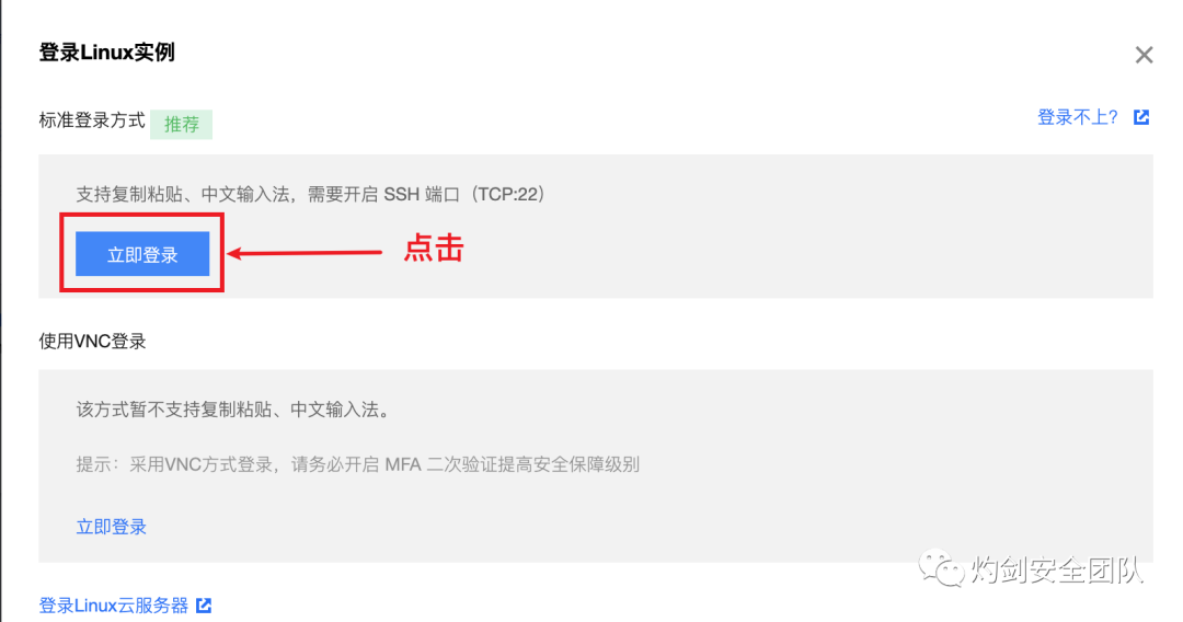依然点击登录,输入虚拟MFA设备动态密码确定,使用vnc登录,点击"立即登录"
