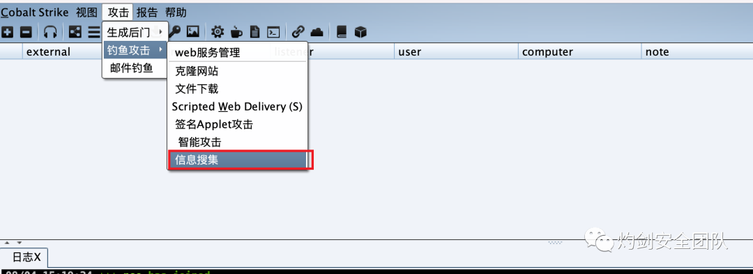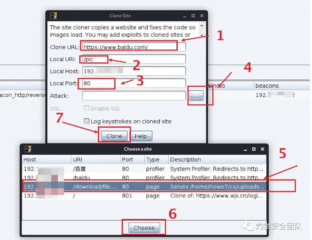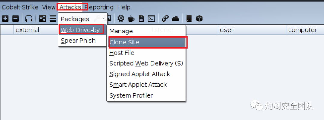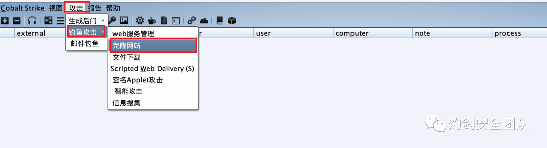 打开cs,攻击->钓鱼攻击->克隆网站模块
