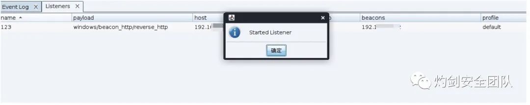 CobaltStrike的内置监听器为Beacon,外置监听器为Foreign。CobaltStrike的Beacon支持异步通信和交互式通信。点击cobalt strike->监听器->选择add