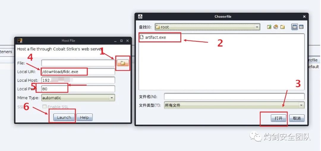 点击Attacks->Web Drive-by->Host File,弹出窗口,选择刚刚生成的木马文件,点击Launch生成下载链接