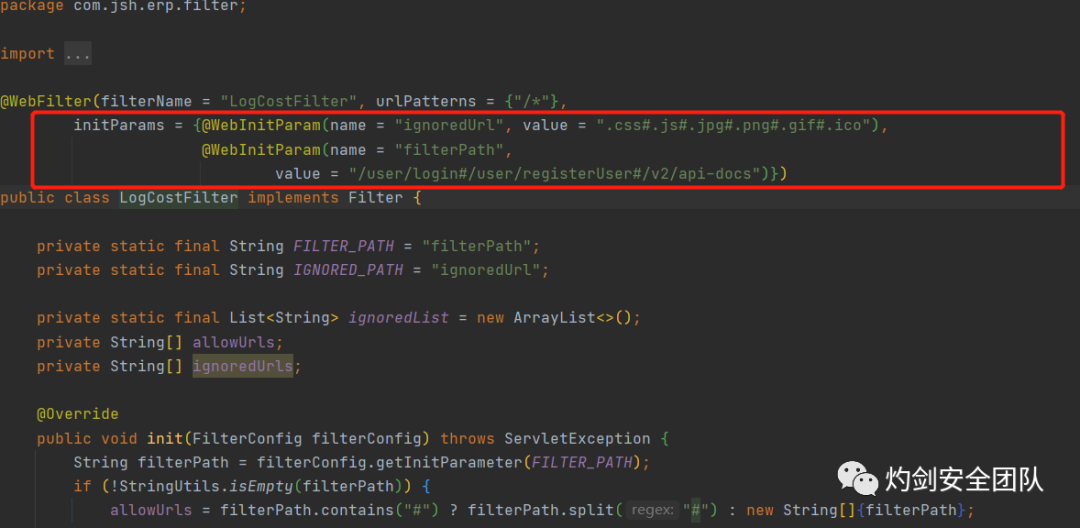 继续看一下过滤器都过滤了哪些内容,搜索@WebFilter定位