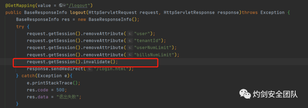 在logout函数中,并没有对session做会话失效操作,或者未在登录时做会话初始化操作。