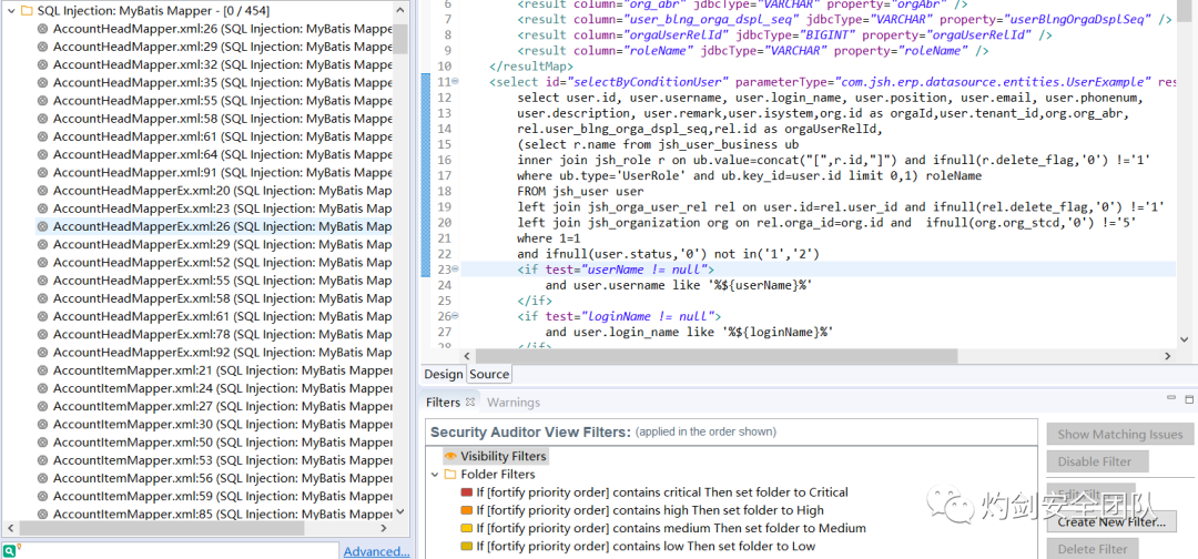 2. 同时利用fortify进行扫描,生成初步扫描结果,进行误报分析,排除误报