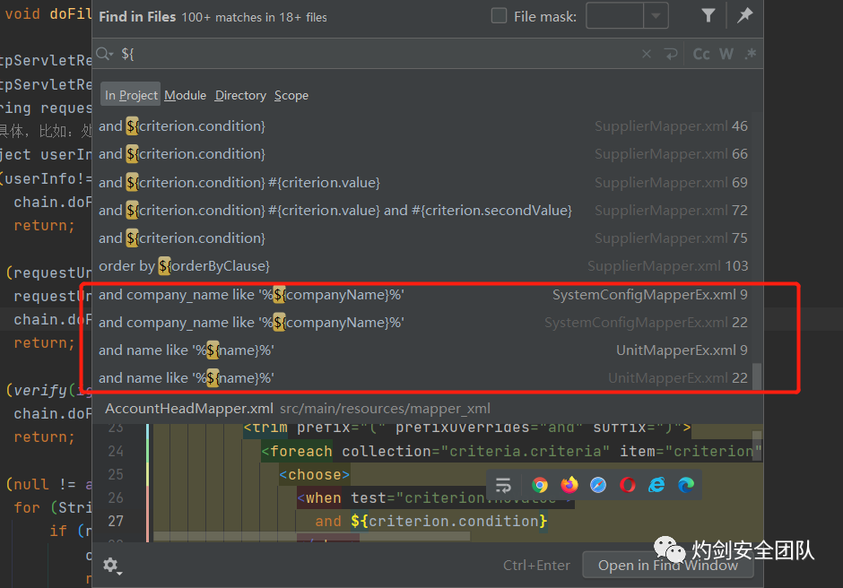 或者pom.xml中看到系统使用的是Mybatis框架,可以直接去审查Maper.xml文件,查看是否使用$拼接。